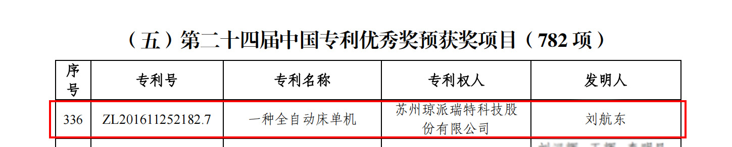 TPET“一种全自动床单机”喜获中国专利优秀奖